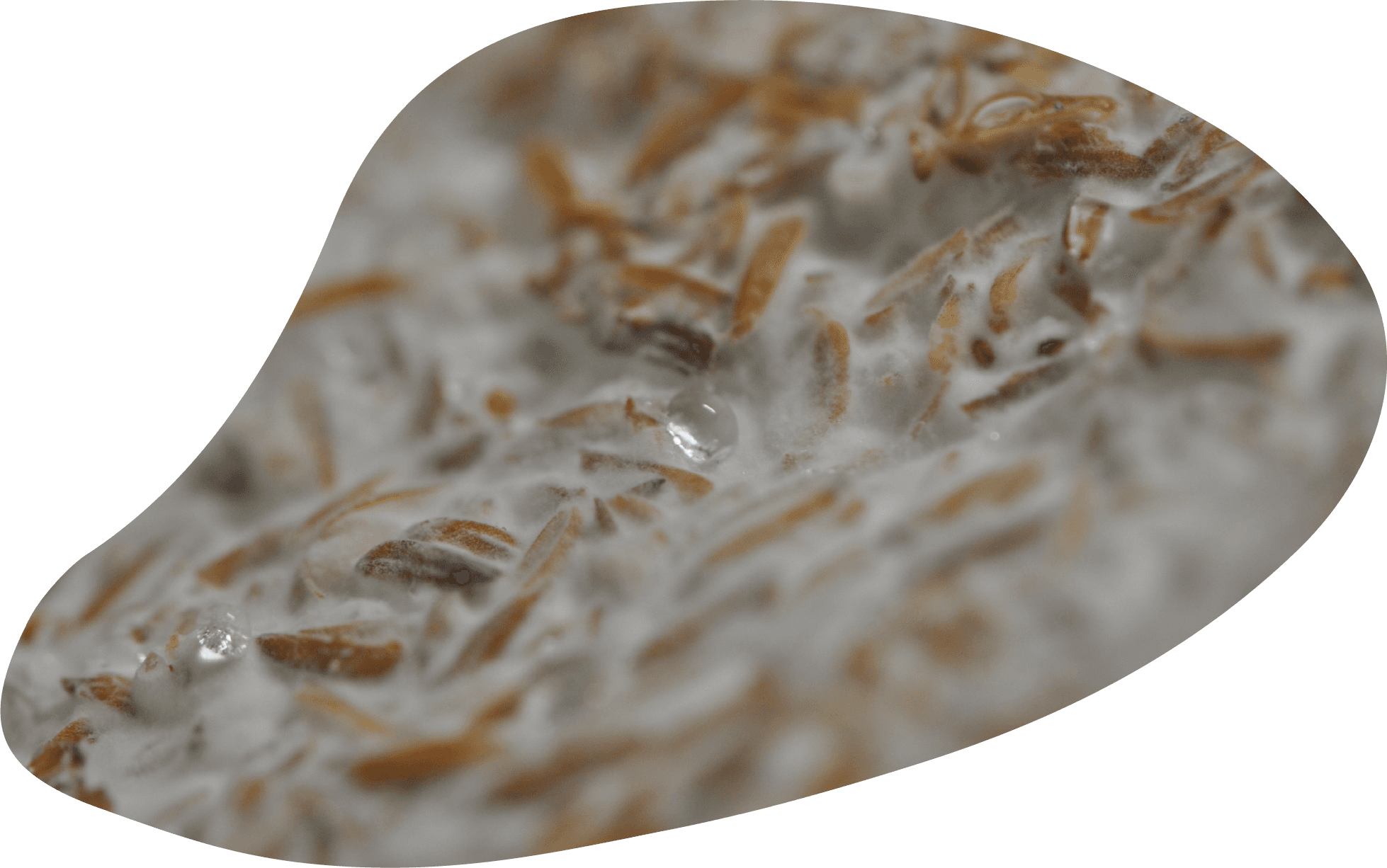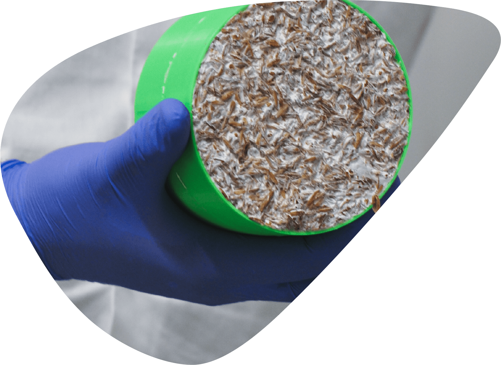 Sfruttiamo la tecnologia naturale del micelio, l' apparato radicale dei funghi, per trasformare sottoprodotti agricoli in un nuovo materiale per imballaggi.